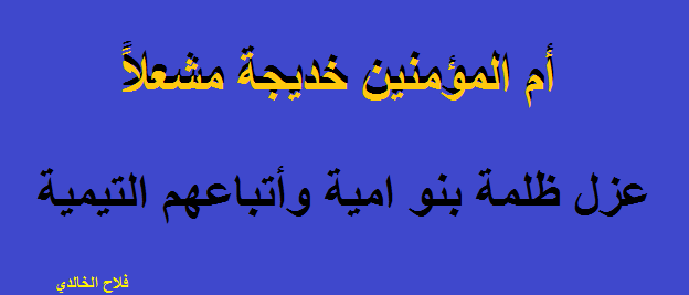 أم المؤمنين خديجة (عليها السلام ) تلك المرأة الصابرة المحتسبة التي شدت ظهر الرسول (صلى الله عليه وآله وسلم ) بصبرها وكفاحها وإنفاق كل ماتملك من جاه وعز وراحة وخدم وحشم لتجعله بين يدي قائدها ومصلح الأمة من الانحراف الذي يقوم به كبراء وسادة مكة في إذلال الناس واستعبادهم فوقفت بوجههم مع سيدها وزوجها داعمة له بكل ما يحتاج فكان رد أصول منهج التيمي من أبو سفيان وأبو جهل قاسياً إرهابياً مجرماً عليها وعلى زوجها هو إعلان الحرب العدائية عليهم من خلال تحريض الناس والصاق أنواع التهم برسول الله ومحاصرتهم وقطع الماء والغذاء عنهم حتى كان يقال أنهم يتغذون على ورق الشجر , نعم كانت عليها السلام داعمة للفكر الإسلامي المحمدي الأصيل وباغضة للتعصب والإقصاء والتهميش الذي يقوم به أئمة وكبراء التيمية فتوفيت صابرة محتسبة تشكو إلى الله ظلم الظالمين لها وزوجها .