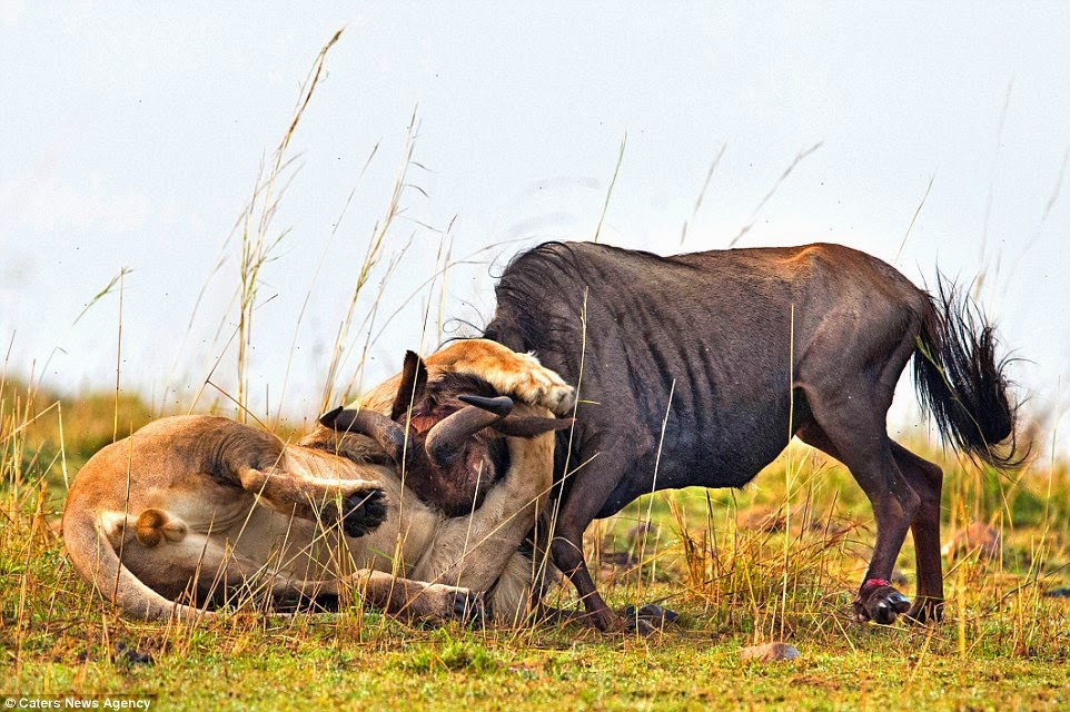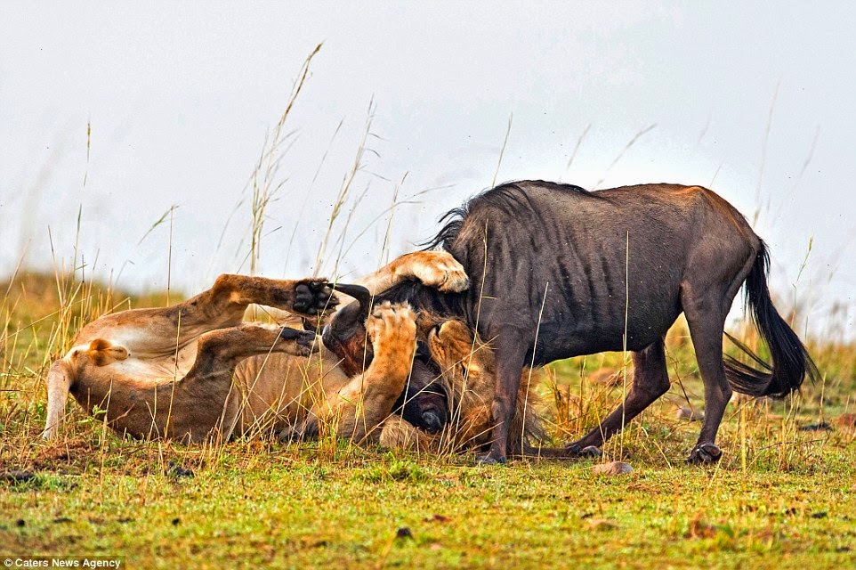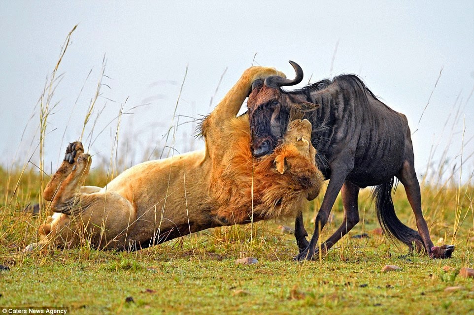 فكان هذا الصراع بينه وبين ثور وحشي لم يستمر سوى دقيقة واحدة .. ناضل فيها الثور بشجاعة وضربه الأسد بشرف .