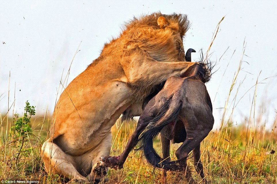 وهذا الأسد خرج لاقتناص رزقه من لدن الرازق الكريم الذي أعطى كل شيء خلقه ثم هدى ......