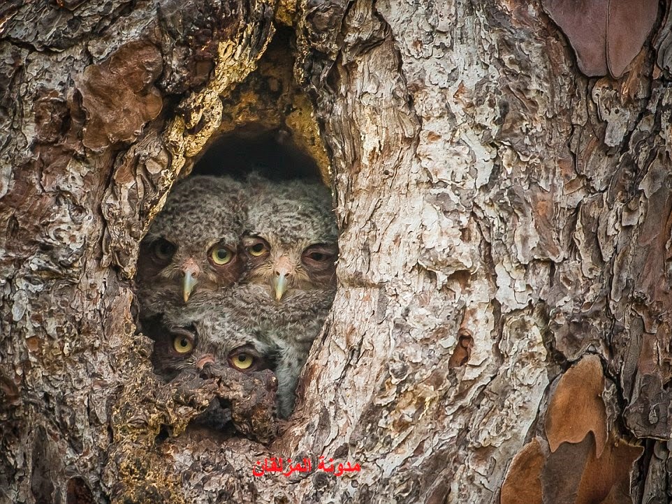 هذه صور نادرة تم إلتقاطها لطائر البوم خلال تخفيه وسط جذوع الأشجار داخل جحور يصنعها بمنقاره.