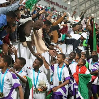 على الرغم من الإمكانات المتواضعة المتاحة لمنتخب ناشييء السودان في بطولة "ج" فقد أفلح هؤلاء الصبيان الناشئة في حصد كاس البطولة بتفوق أذهل الجميع . ولاسيما عند مقارنة حال أطفالنا البؤساء هؤلاء بحال أمثالهم من الدول الأخرى المنافسة في البطولة من أجساد وقوام ولمعان وخدود متوردة ، وأزياء ومأكل ومشرب .. ورفاهية وعناية طبية فائقة ونثريات فلكية.