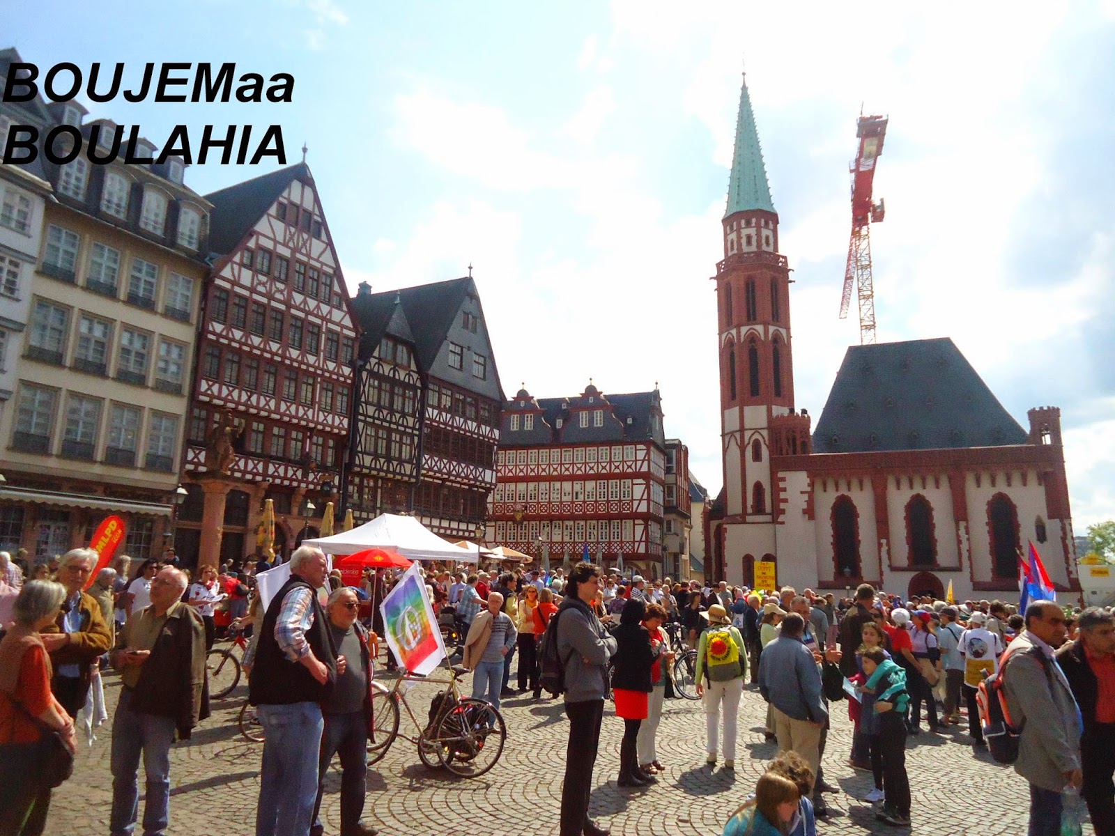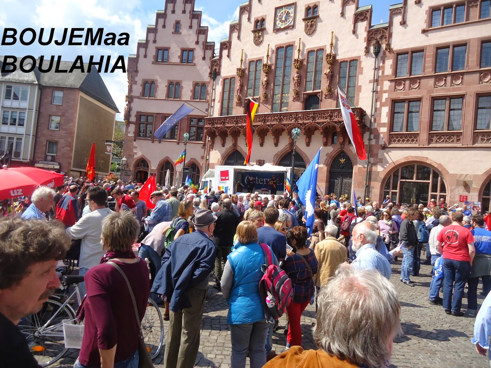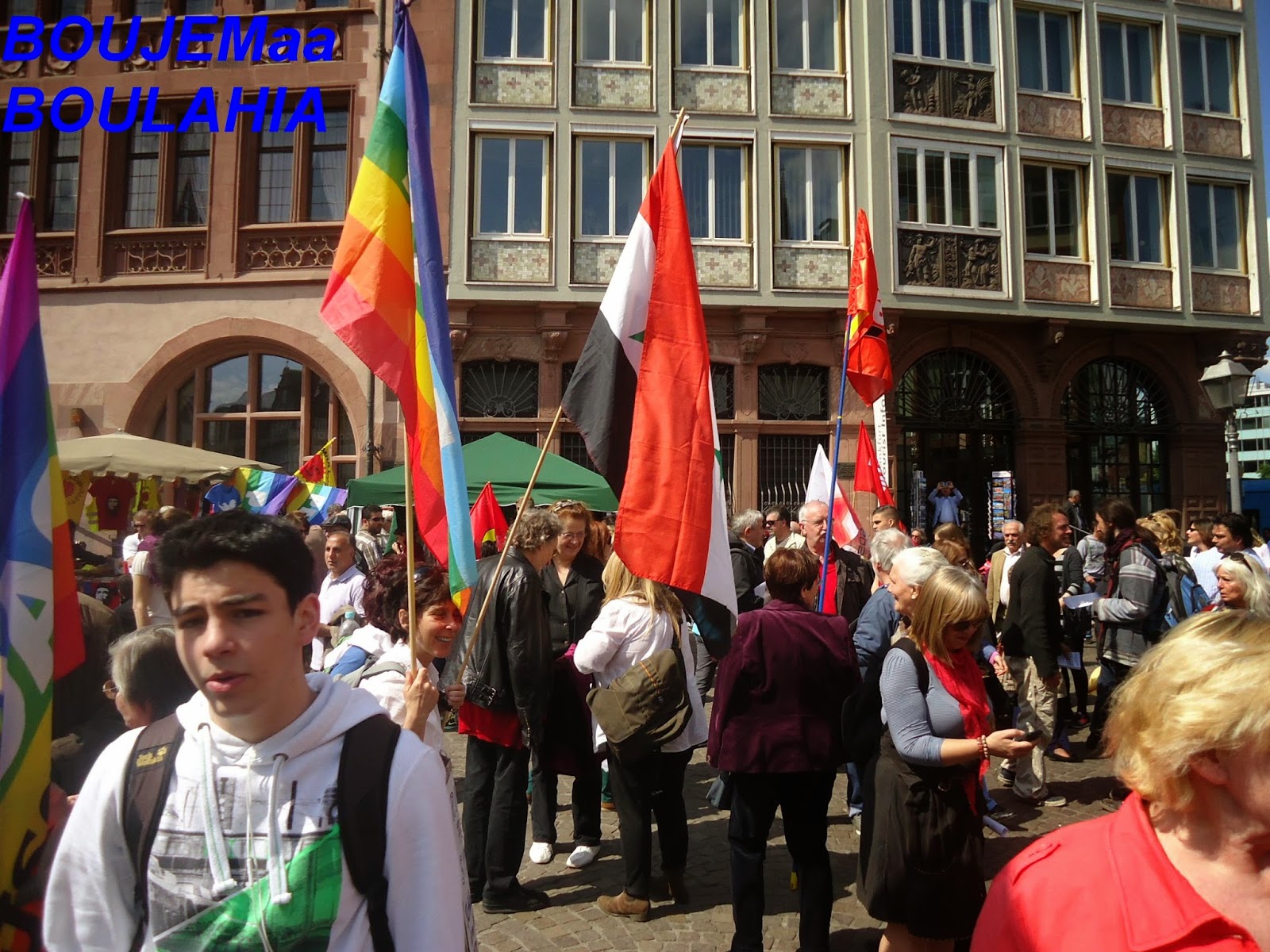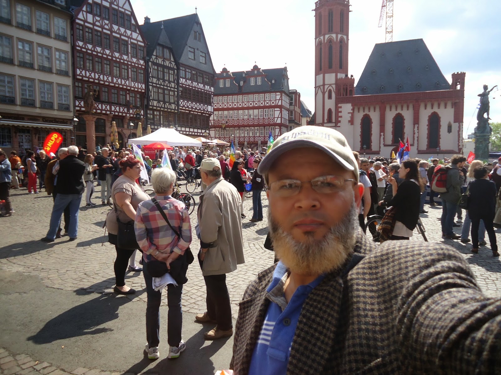 و بمناسبة عيد الفصح المسيحي، نظم عدد من نشطاء " السلام" أكثر من فعالية احتفاء بهذا اليوم,و طالب متظاهرون في وقفة احتجاجية أقيمت صباح اليوم أمام الكنيسة الكاثولكية بفرانكفورت بوقف الحرب في كييف,سوري,العراق,لبنان وفي العالم أجمع.وقالوا:"نحن ندعو للمقاومة الشعبية السلمية من أجل السلام في أوروبا والعالم". كما نادوا بضرورة إلغاء التنافس والصراع التنافسي بين الإنسان والإنسان. وحملوا لافتات مكتوب عليها الموت للاشتراكيين والرأسماليين وسياسييهم وصحافتهم. وحمل المشاركون في المضاهرة صورا للأطفال ضحايا الحروب. واعلام الدول التي تقع فيها الحروب. كما حمل احدهم صورا للالات الحربيه والعسكريه. و الغريب في الأمر هو اننى لم ارى ولو عربيا واحد يشارك في هذه الفعاليات والمسيرة التي شارك فيها العشرات من النشطاء المدنيون ورجال الدين والصحفيون لنبذ العنف ضد الحروب في المناطق المختلفة من العالم محاولة منهم لإيقاف نزيف الدم وتجنيب العالم ويلات حرب عالمية جديدة، كالتي مرت علينا في خواتيم العشرينات من القرن الماضي التي ضربت العالم بأزمة الكساد الاقتصادي التي تسببت فيها الرأسمالية العمياءو المتوحشة.