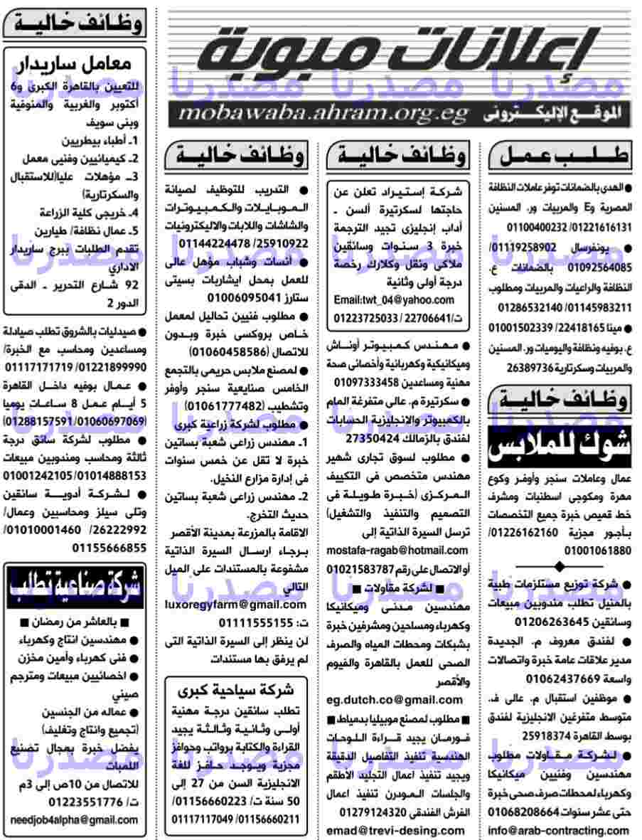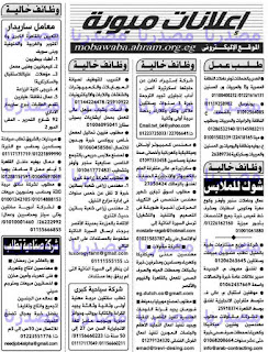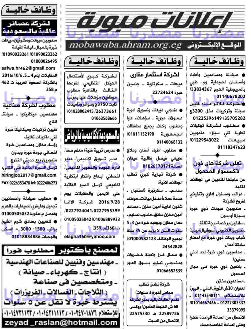 وظائف الاهرام الجمعة 23 سبتمبر 2016 , فرص عمل فى مصر الجمعة