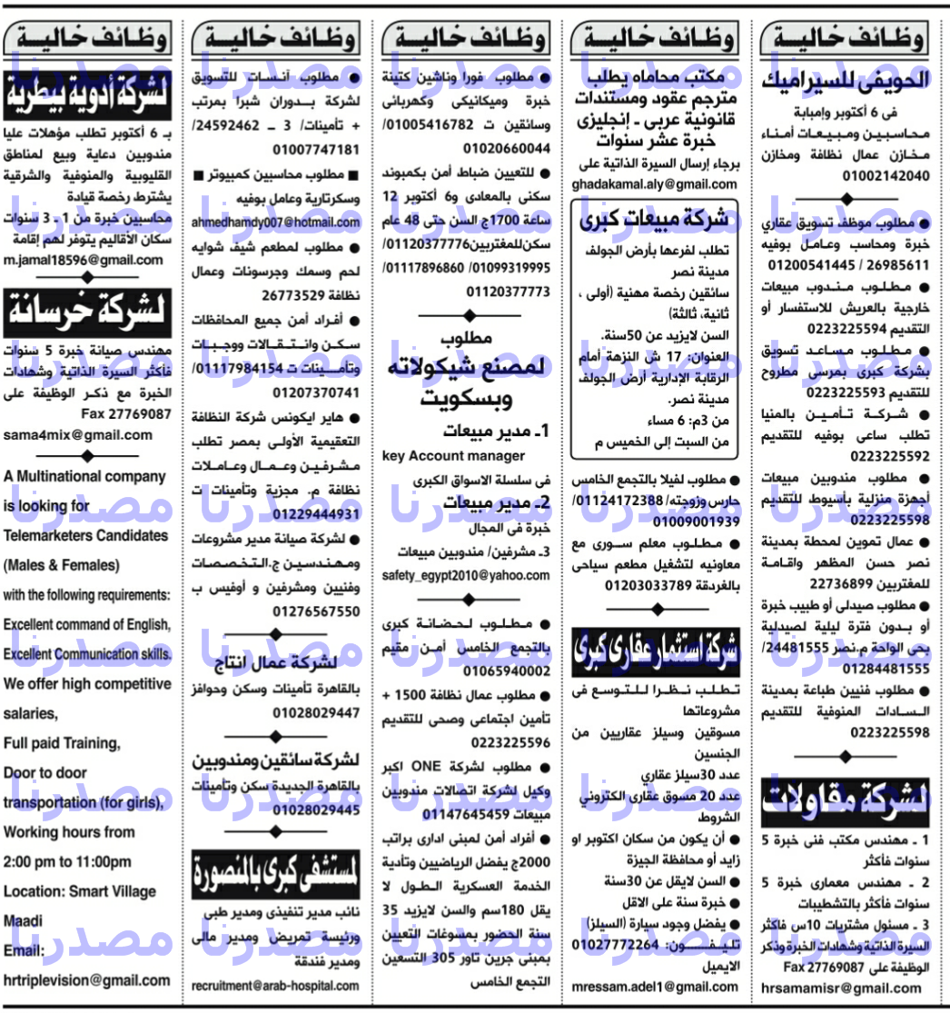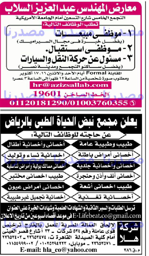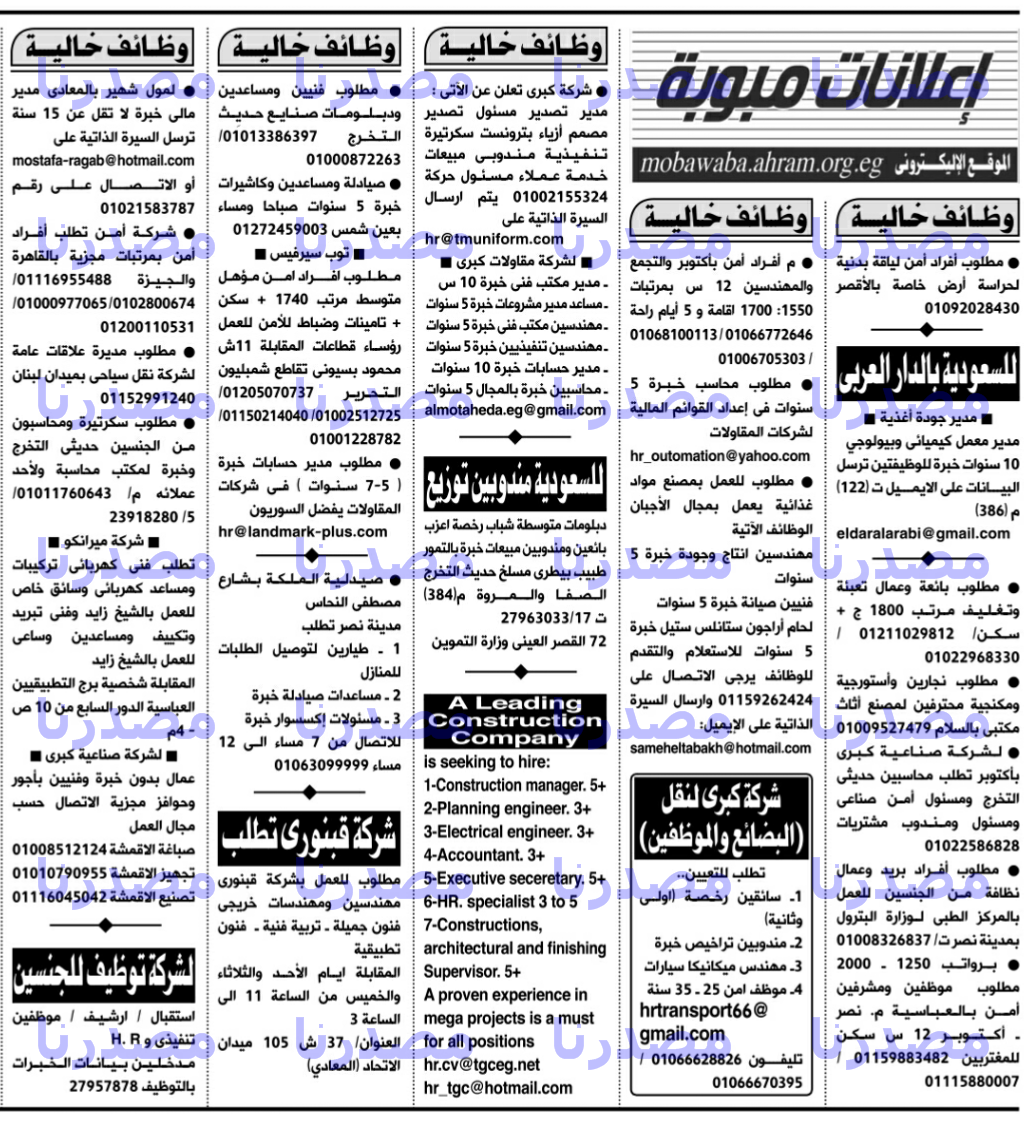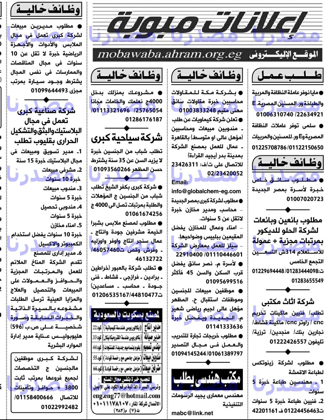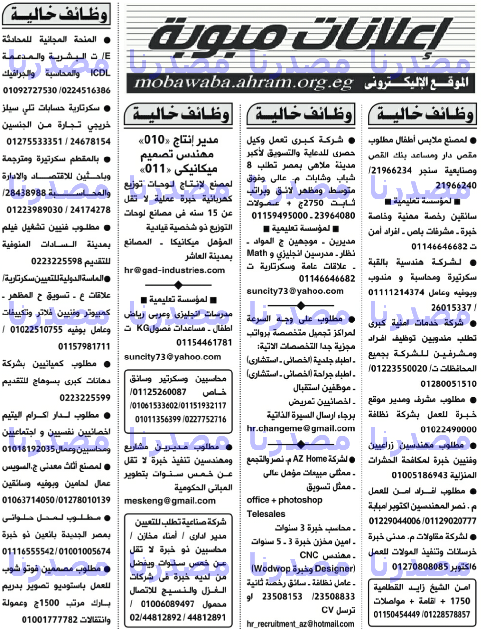 وظائف خالية للمصريين في مصر و دول الخليج من موقع مصدرنا وظائف الاهرام الجمعة .