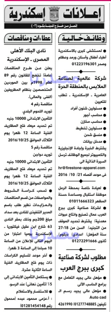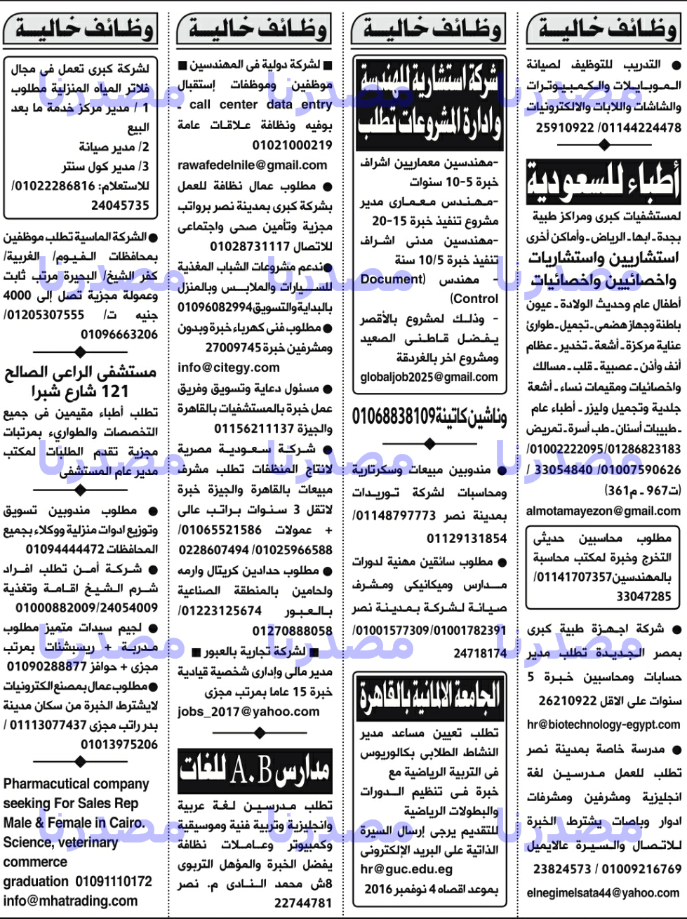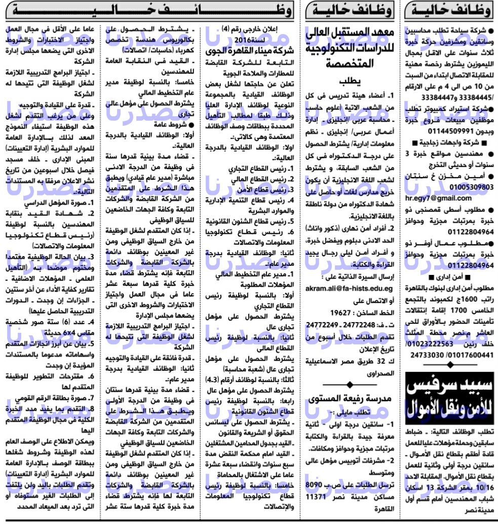 عرض لاعلانات الوظائف الخالية من جريدة الاهرام الجمعة الموافق 14/10/2016