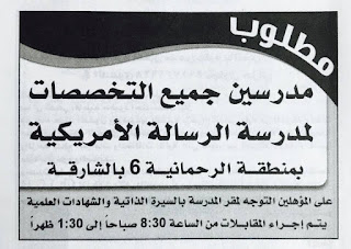 وظائف مدرسة الرسالة الأمريكية.