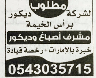 وظائف في شركة ديكور برأس الخيمة.