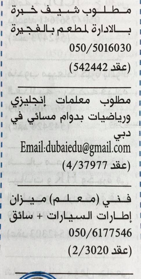 وظائف جريدة الخليج الاماراتية 30 أغسطس 2017.