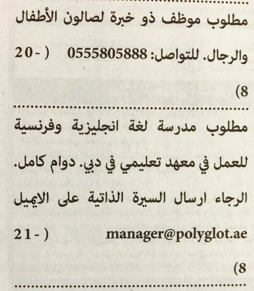 مطلوب مدرسين لغة انجليزية وفرنسية للامارات.